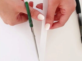You'll need a piece of string, a thin strip of paper, a ruler, and a pen.